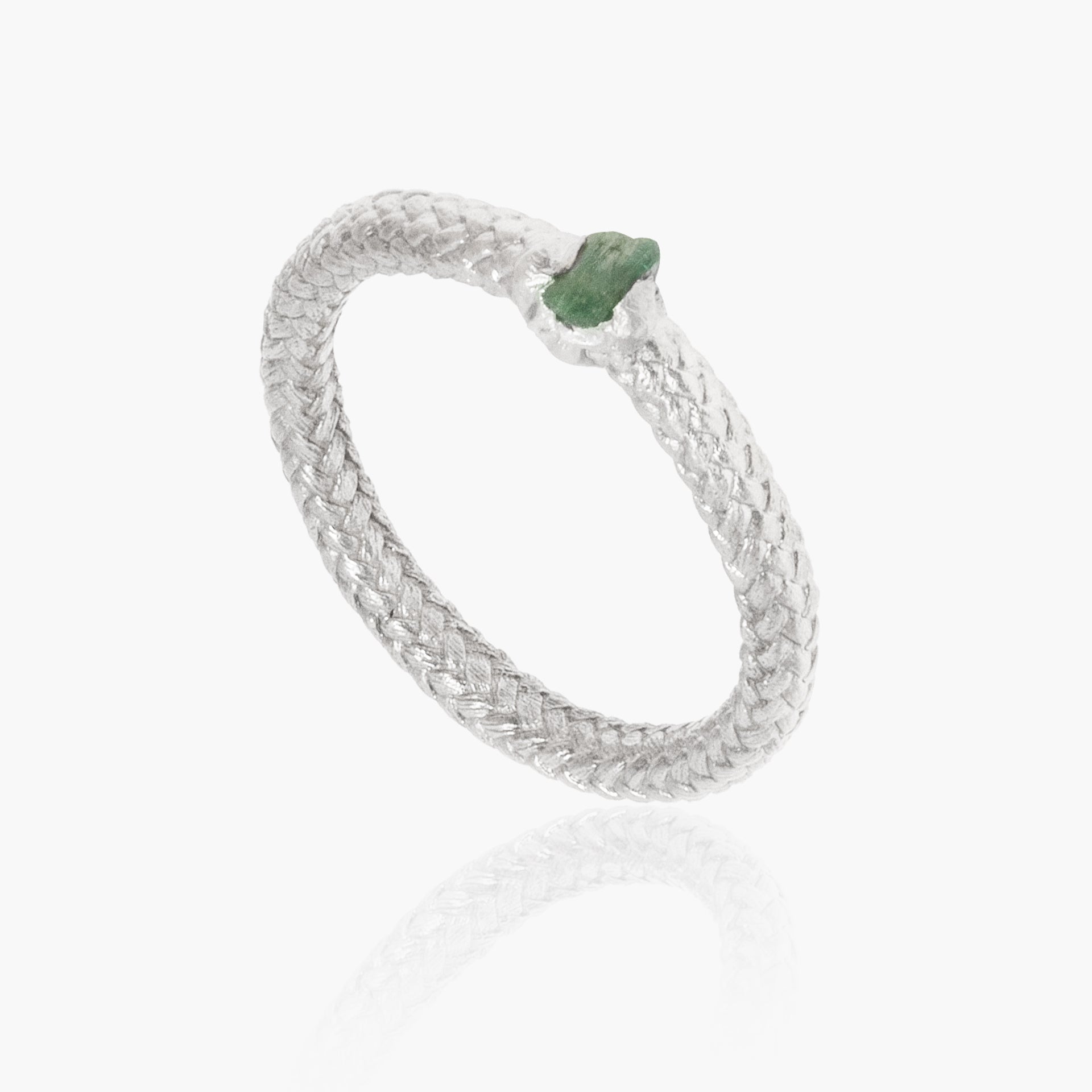 A simple rope ring with a raw emerald